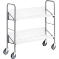 • Grå arkivvogn fra Kongamek. Vognen har to skrå hyller som gjør det enkelt å plassere permer i den. Grå, pulverlakkert stativ og hyller i hvit melamin. Hjulene gjør det enkelt å flytte vognen ved behov. Vognen har 4 bokstøtter.