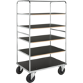 Förzinkad och lättmanövrerad etagevagn med fem hyllplan av tåligt laminat. Etagevagn ur serien 500 från Kongamek passar utmärkt för transport av alla typer av gods tack vare dess sammansättning av rejäla material.