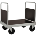 Robust plattformsvagn med två gavlar för en smidig hantering. Gavelvagn serie 100 bromsad från Kongamek består av en förzinkad stålkonstruktion med gedigna gavelskivor i laminat, perfekt lämpad för lager och industri.