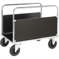 Lättmanövrerad förzinkad gavelvagn med lastplan och gavelskivor av motståndskraftigt laminat. Gavelvagn serie 500 bromsad från Kongamek lämpar sig utmärkt för transport av längre varor som kräver stöd på långsidan.