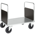 Denna kvalitativa gavelvagn med två gavlar av tåligt laminat och en botten av 2 mm galvaniserad stålplåt lämpar sig väl för tyngre laster. Gavelvagn serie 600 bromsad från Kongamek är dessutom mycket flexibel att köra.
