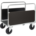 Rejäl gavelvagn med rymlig lastplan tillverkad av 2 mm galvaniserad stålplåt. Gavelvagn serie 600 bromsad från Kongamek med två gavelskivor av tåligt laminat längs långsidorna passar utmärkt för transport av längre föremål.