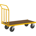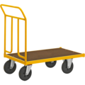 Plattformsvagn i gullackerad stålkonstruktion med ett rejält lastplan av laminat. Plattformsvagn ur serien 144, bromsad från Kongamek är försedd med en gavel och är perfekt för transport av skrymmande gods i de flesta miljöer.