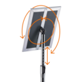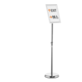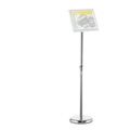Floor-standing sign holder from Durable with snap frame for A4 format. Adjustable in height and reading angle, and can be rotated to portrait or landscape format. Inner dimensions: 27.9 x 19.2 cm, H x W.