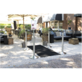 Allväderbeständigt Avspärrningsset med svart band från Securit är bra till entréer och event för att styra köbildningen. Tillverkat i borstat rostfritt stål med en reptålig och golvskyddsförstärkt bas.