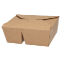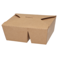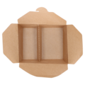 Brown rectangular 2-compartment take-away boxes made of unbleached kraft paper with PE coating. Close to nature and powerful, these take-away boxes are suitable for both hot and cold dishes. Great for modern street food!