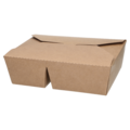 Brown rectangular 2-compartment take-away boxes made of unbleached kraft paper with PE coating. Close to nature and powerful, these take-away boxes are suitable for both hot and cold dishes. Great for street food, among other things!