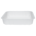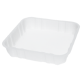 White square food tray for storage, packaging, or serving of food and dishes. The tray is made of quality hard plastic (HDPE). It is suitable for both hot and cold food and is an excellent choice for the delicatessen and charcuterie counter.