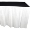 White premium table skirt in soft quality. Each table skirt is equipped with a self-adhesive tape strip for easy installation and removal. The table skirts are wipeable thanks to the liquid-resistant surface.