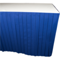 • Blue Dunicel® table skirt in soft quality. Each table skirt is equipped with a self-adhesive tape strip for easy installation and removal. The table skirts are wipeable thanks to the liquid-resistant surface.