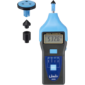 Speed meter with digital readout. Combined optical non-contact measuring and mechanical sensing with measuring wheel.Optical measuring: Point the light beam against a reflective tape or other contrasting part on the rotating object. Reading distance 50–150 mm.Mechanical sensing with measuring wheel: Measures rpm or speed. Gently press the measuring tip toward the centre of the rotating object to measure the rpm. Alternatively, press the measuring wheel toward the object to measure the speed. (e.g. conveyor belt, drive belt or bandsaw blade.)The memory saves the last measurement as well as the max. and min. values.Requires 4 x 1.5 V LR06 batteries, not included.