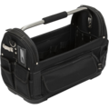 Strong, open tool case in polyester with a PE bottom. Saw pocket in durable ballistic nylon with adjustable Velcro strap. Rubberised Velcro strap to store large objects such as spirit levels. Velcro strap, perfect for securing a 600 mm spirit level. Tool compartment for all your storage needs with easy access pockets. Extra strong, steel handle bar. Ergonomic rubber grip. Shoulder strap.