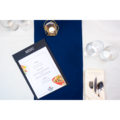 Snyggt och stilrent Menyhållare med magnetisk toppstängning i A4-format från Peleman. Det passar perfekt för restauranger som föredrar ett lyxigt naturligt utseende Den magnetiska klämman håller enkelt upp till 5 pappersark.