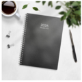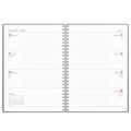 Kierresidottu täyttöosa Burde Senator A5 -viikkokalenteriin. Kalenterissa on viikkonäkymä sekä vuosisuunnitelmat kuluvalle ja seuraavalle vuodelle. Kalenterin kansi on mustaa kartonkia.