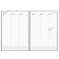 Kierresidottu Weekly A5 -kalenteri Burdelta, jossa viikkonäkymä ja tuntijaottelu 08–19 sekä vuosinäkymä jokaisella aukeamalla. Sisältää myös kansalliset pyhäpäivät sekä vuosisuunnitelmat kuluvalle ja seuraavalle vuodelle.