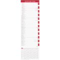 Suuri pöytäkalenteri välilehdellä yksi kuukausi per lehti. Kahdentoista kuukauden lehdet nimipäivineen ja tilaa päivittäisille muistiinpanoille sekä vuosikatsaus alalaidassa. Uurrettu kuukausirekisteri.
