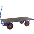 Stabil flakvagn i mycket kraftig kontruktion. Pulverlackerad med lastplan av plywood, svetsad rörram och rejäla luftgummihjul med plåtfälg. Anpassad för användning inom flera olika branscher och miljöer.