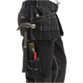 Kaksi vahvistettua naulataskua, voidaan työntää etutaskuihin. Kaksi takataskua palkeella. Vasarapidike. Vahva metallivetoketju. Vahvistettu mittatasku. Materiaali: 100% puuvillatwilli. Vikt: 370 g/m².
