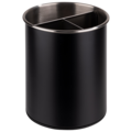 Vridbar Bestickkorg med 3 fack Ø 13cm från APS. Korgen är tillverkad av rostfritt stål och polypropen, denna bestickkorg inkluderar en löstagbar avdelare med 3 fack för optimal organisation. Den har också en möbelvänlig undersida och en silikonbasinsats för stabilitet.