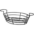 Oval Serveringskorg 28x19cm i svart rostfritt stål från Sunnex. Den stilrena och praktiska korgen är perfekt för snabbmat och har en integrerad hållare för ketchup eller annan dressing, vilket gör den idealisk för restauranger och caféer! Se tillvalsartiklar för passande dippskål!