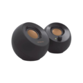 • Den klotformade Creative Pebble-högtalaren, inspirerad av japanska stenträdgårdar, är en smidig och elegant 2.0-högtalare som passar perfekt i varje hem och på varje kontor. Den har en 45° förhöjd ljudbild för förbättrad ljudprojektion och drivs av en USB-sladd för problemfri musikunderhållning. Ljud rakt in i dina öronCreative Pebble har ett 45° förhöjt specialanpassat fjärrområdesdrivelement som riktar ljudet till dina öron och placerar dig på den bästa punkten för en fantastisk ljudupplevelse. Liten men starkDen lilla Creative Pebble har inbyggda passiva element och en imponerande sammanlagd RMS på 4,4W, och den ger ett balanserat ljud med djup, omslutande och kristallklar detaljrikedom. Anslut dina enheter via 3,5 mm-kontakten och förbered dig på en överraskning. Bekvämlighet inom räckhållJustera volymen snabbt med Creat