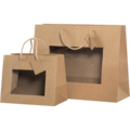 Presentpåse med fönster i mediumstorlek (240x195x140 mm) är en elegant och funktionell förpackningslösning. Den är tillverkad i kraftigt brunt papper och har ett transparent fönster på framsidan, tillhörande kort och hål – perfekt för att lyfta fram produkter eller presenter på ett stilfullt sätt.
