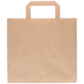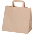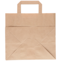 Brun papperskasse tillverkad av oblekt kraftpapper med flata handtag. Med en volym på 11 liter och måtten 260×175×245 mm är den lämplig för mindre matlådor, drycker eller varor. Konstruktionen med platt botten gör den enkel att packa och stapla.