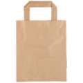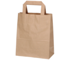 Bruna papperskassar tillverkade av oblekt kraftpapper med flata handtag. Enkel att packa mindre varor i tack vare bottenmåttet på 9 cm. Utmärkta papperspåsar för såväl bageriet, cafét som till butiken.