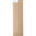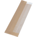 Brun papperspåse med fönster längst halva framsidan, tillverkad av PE-belagt papper och PET-plast. Perfekt förpackning för smörgåsar, baguetter och bakverk. Påsen håller innehållet färskt och bagerihyllan hygienisk.