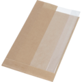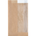 Brun papperspåse med fönster längs halva framsidan, tillverkad av PE-belagt papper och PET-plast. Packa fönsterpåsarna med smörgåsar, för lyxigare och fräschare exponering. Perfekt förpackning för smörgåsar, bröd och bakverk