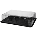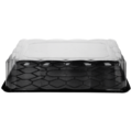 Rektangulär tårtform med svart botten och transparent lock. Tårtformen med rundade kanter är optimal till smörgåstårtan, traditionella tårtor och stora bakverk. En stilren och rymlig tårtform som passar utmärkt till cateringdukningar.