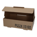 Pizzakartong to go är en stabil, brun pizzakartong med tidlöst tryck samt text på. Kartongen är lätt att vika och förbereda samt håller värmen bra. Standardmått som passar perfekt för din inbakade favorit pizza!