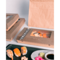 Sushiboxen Well4Food är en snygg och praktisk sushibox i papp med mönster. Sushibitarna kommer till sin rätt i denna förpackningen som har ett fönster. Här kan du tryggt skicka med sushin för take away!