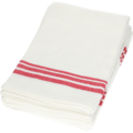 Kökshandduk från Exxent. Kökshandduken har röda ränder och är perfekt för professionella kök. Tillverkad av tvättålig och slitstark bomullsväv, säkerställer handduken långvarig användning. Den är helt fri från gifter och kemikalier, certifierad av STANDARD 100 by OEKO-TEX ®, vilket gör den till ett säkert och hållbart val för alla köksbehov.