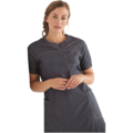 Feminin A-skärning. Rund hals med snitt. Halva ärmar med resår. En bröstficka med tryckknapp. ID-rem. Två höftfickor med dolt snäppfäste. Ergonomiskt placerade höftfickor. Midjejustering i ryggen. Invändig separat mobiltelefonficka i höftfickan. Nyckelband.