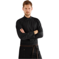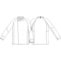 Enkel och lätt utformning. Kinakrage. Hank i nacken för bröstförkläde. Dolda tryckknappar. Diagonal trådriktning under arm, som ger stretcheffekt. Lång ärm med ett ergonomiskt snitt. Tvådelad pennficka på vänster ärm. Raglanärm. Manschetter. Enkel pull-up-funktion.