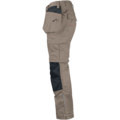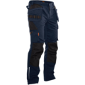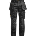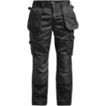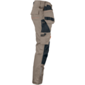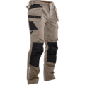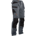 Lättskött polyester/bomull som håller färg och form. Hölsterfickor med extra fack och extra ficka med blixtlås. Bakfickor med lock och kardborrestängning. Benficka med extra fack och lock med kardborrestängning. Tumstocksficka med knivhållare. Förstärkning i hölsterfickor och på knäskyddsfickor. C42-64 kan förlängas med 5 cm genom ett utvik i benslutet.