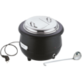 Soppkittell elektrisk svart 10 liter från APS. Värmaren SUNNEX är tillverkad i rostfritt stål och järn med ett lock som är avtagbart, stålpanna, bain marie electric, slev, cirkulär ram, termostatstyrning till 80°C.