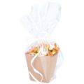 Pappersvas som passar perfekt för att ge bort en blomma, godis eller presenter i. Vasen är gjord av kartong med en fin vågig kant upptill. Gör en fin inslagning med hjälp utav cellofan och ett matchande presentband till.