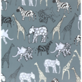 Presentpapper Safari Grå har en grå bakgrund och lekfullt safari motiv med små söta elefanter, zebror och giraffer i dova färger. Fullborda paketinslagningen med presentsnören för fina gåvor och presenter till de mindre.