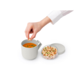 Soppmugg från Brabantia är en smart soppa-to-go-behållare som rymmer upp till 0,6 liter av din favoritsoppa och är mikrovågssäker. Muggen är även försedd med en påskruvad topping behållare som håller ingredienserna åtskilda och färska.