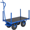 Flakvagn i mycket kraftig konstruktion. Pulverlackerad med lastplan av plywood, svetsad rörram och rejäla luftgummihjul. Med hjälp av handtaget så bromsar man enkelt vagnen. Anpassad för användning inom flera olika branscher och miljöer.