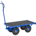 Robust flakvagn i mycket kraftig konstruktion. Pulverlackerad med lastplan av plywood, svetsad rörram och rejäla luftgummihjul med plåtfälg. Med hjälp av handtaget så bromsar man enkelt vagnen. Anpassad för användning både utomhus och inomhus.
