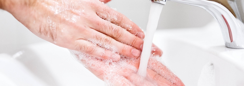 - Vask hendene ofte og nøye: Den mest effektive måten å bli kvitt skadelige bakterier på er ved å vaske hendene ordentlig med vann og såpe. Prøv og lag det til en vane at du vasker hendene på jobben hver gang anledningen byr seg. God håndhygiene er ekstra viktig om du har et yrke der du håndterer mat. Nedenfor kan du lese en gjennomgang om hvordan du bør vaske hendene.