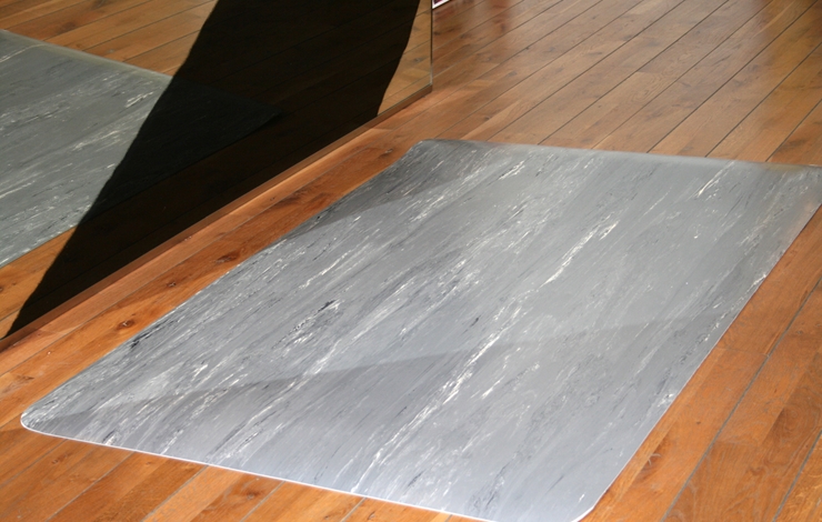Den marmorerte oversiden er jevn og lett å holde ren. Matten passer perfekt til tørre industrimiljøer, ved monteringslinjer, i butikker eller ved serviceskranker.
