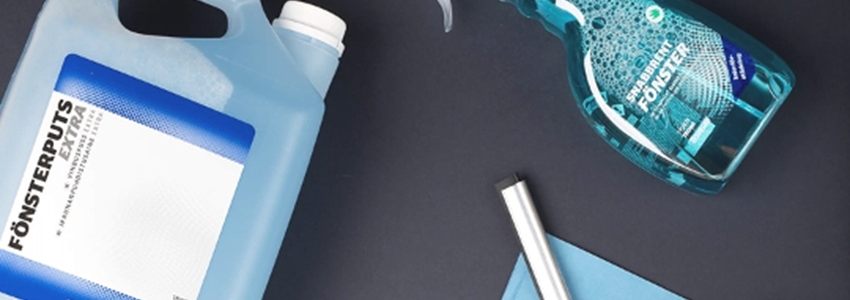 Vindusvaskemiddel: Velg et kvalitetsmiddel beregnet for vindusrengjøring. Vi har flere forskjellige vindusvaskemidler i vårt sortiment.