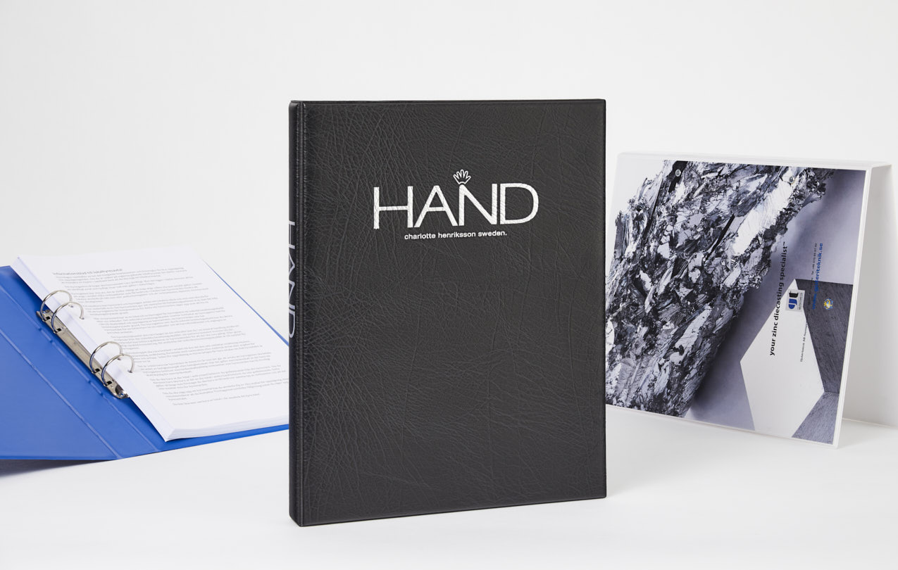 Presentasjonsmapper med bedriftens logo gir et proft inntrykk på møterommet Vi kan profilere mapper etter dine ønsker.