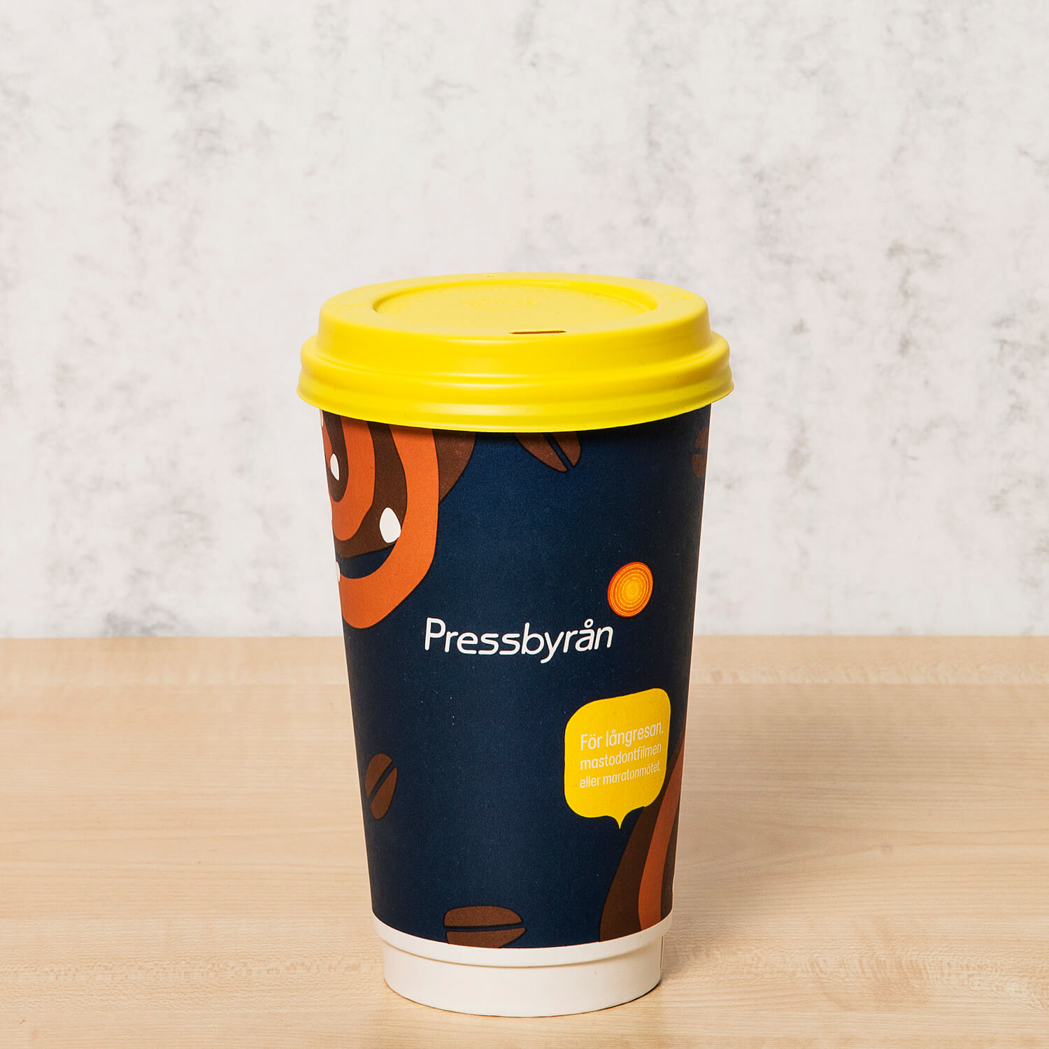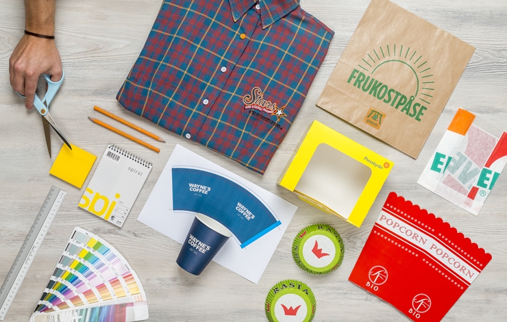 Trykk logoen din på pappkrus, plastglass eller en annen form av take away produkt. Hos oss finnes det mange alternativ å velge fra.