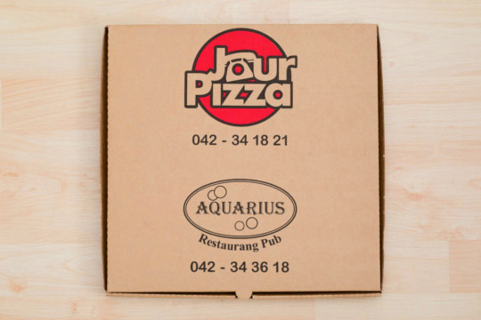 Profiltrykk pizzakartongene dine etter eget ønske hos oss. Vi har flere ulike størrelser du kan velge blant.