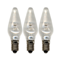 3-pakk universelle LED-reservepærer med klart glass og E10-sokkel, 10-55V. Dette produktet passer til 5-armede lysestaker med stikkontakt. For innendørs bruk.